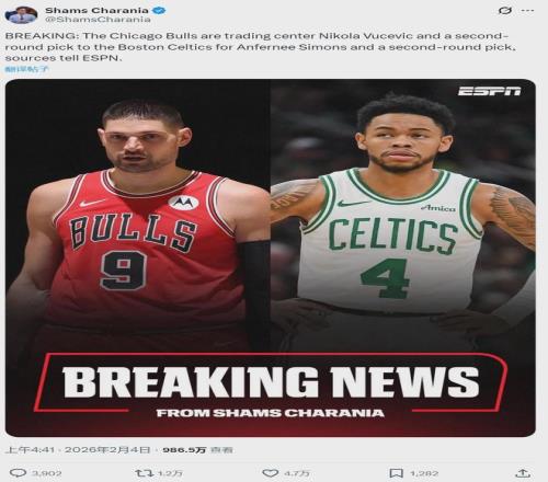 北京时间2月4日,距离本赛季交易截止日仅剩两天,今天NBA一共达成4笔交易!先来说说活塞、公牛和森林狼的三方交易:活塞得到许尔特、萨里奇和2026年首轮互换权(来自森林狼);公牛得到艾维和康利;森林狼得到现金。